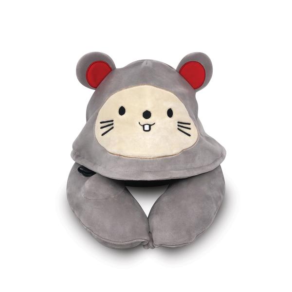 Travelmall 3D Inflatable Neck Pillow with Patented Pump and Hood (Mouse)
