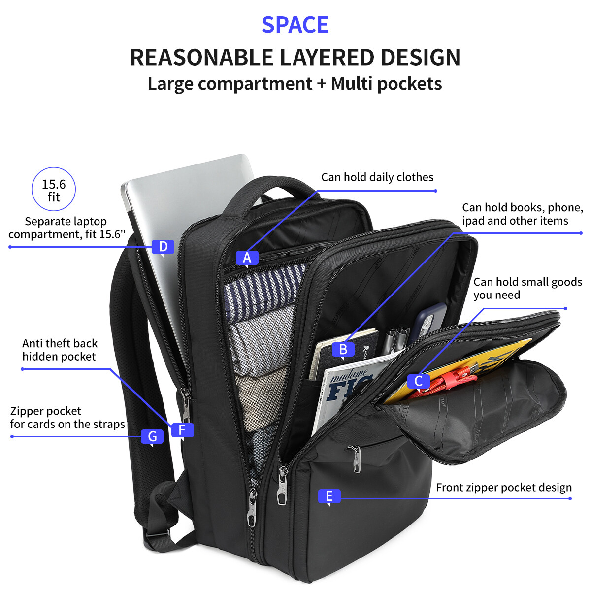 3. Large capacity - Multiple pockets