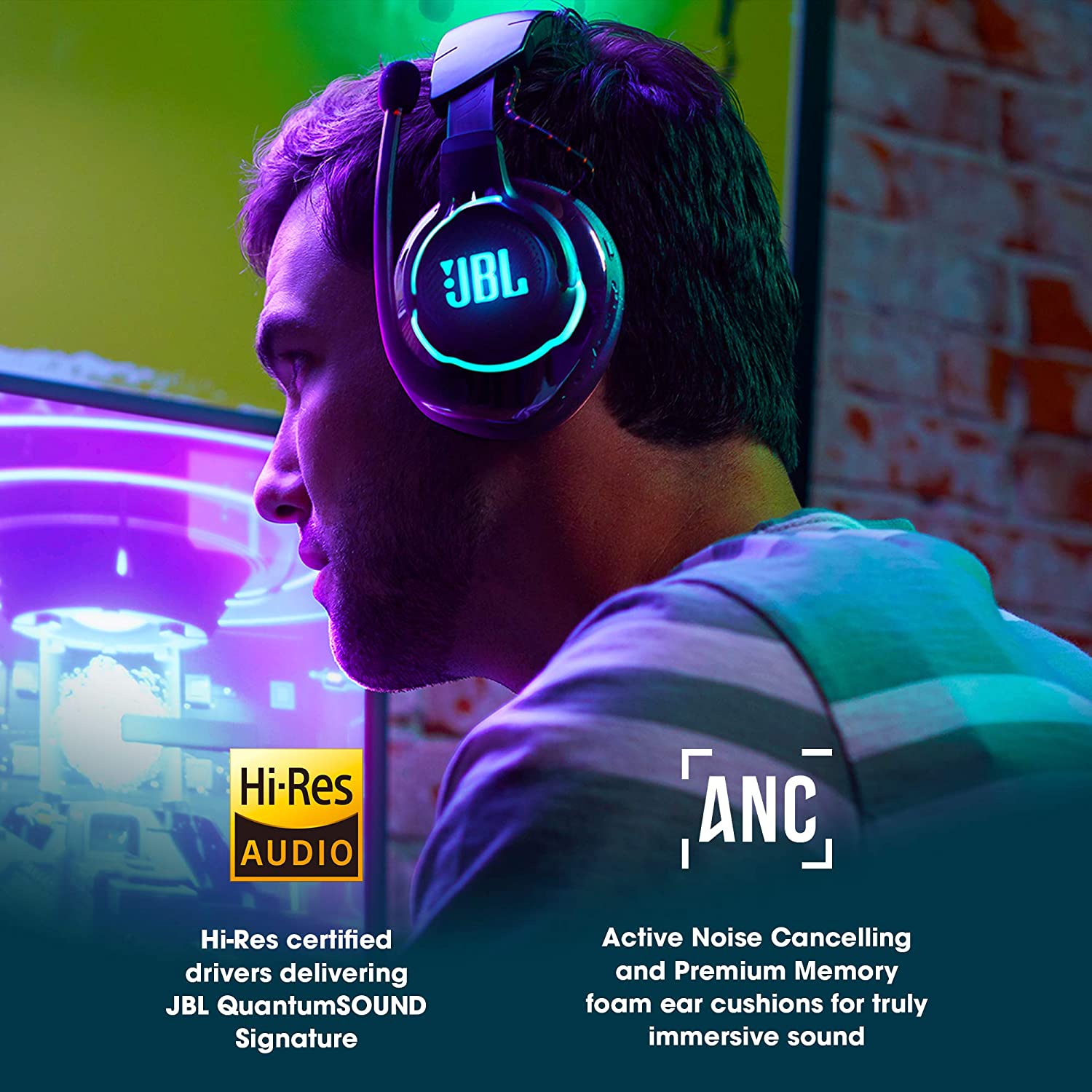 JBL Quantum 800 - Wireless Over-Ear Performance Gaming Headset with Active Noise Cancelling and Bluetooth 5.0