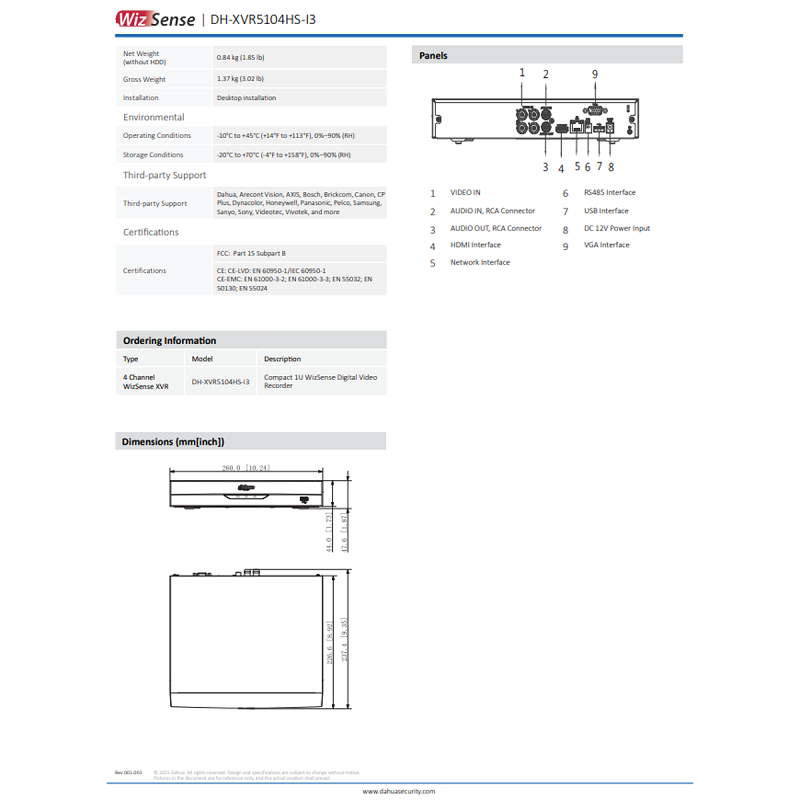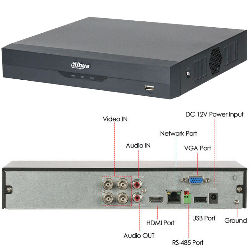 Dahua XVR5104HS-I3 4CH XVR [Penta-brid 5M-N/1080P Compact 1U WizSense 4 Channel Digital Video Recorder (DVR) PC-Mobile APP:iDMSS Lite/DMSS]