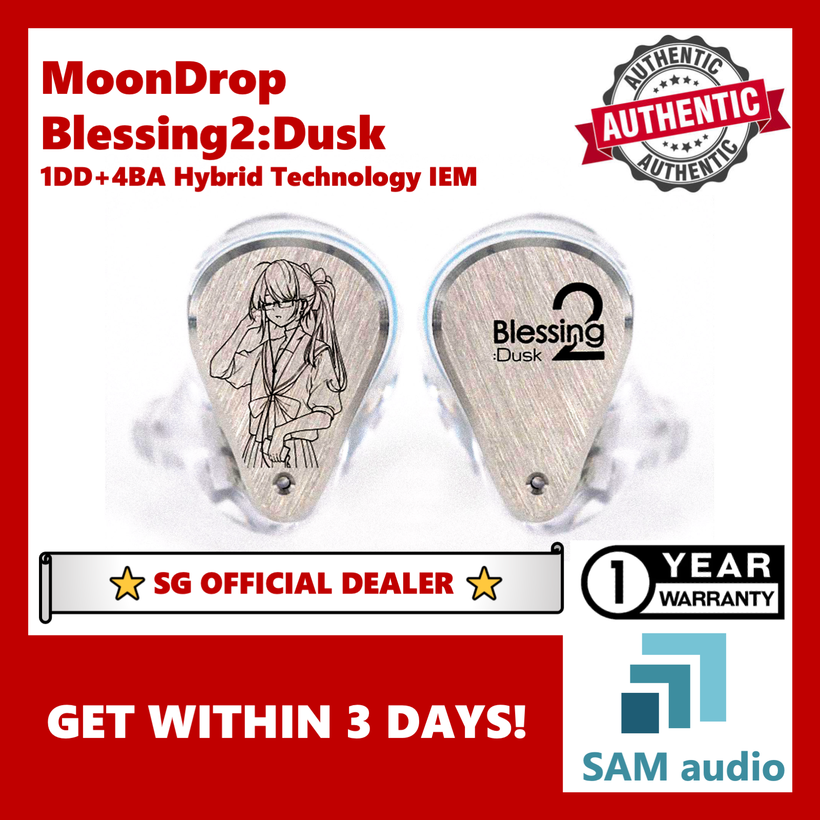 [SG] Moondrop Blessing 2 Dusk, 1DD special paper composite, 4BA Knowles / Softears, Hybrid HiFi In-Ear Earphones IEM