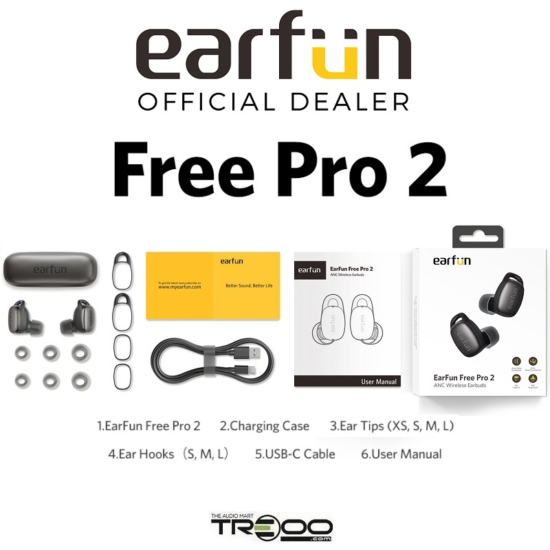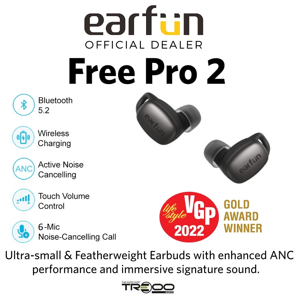 EarFun Free Pro 2 IPX5 Water-Resistant True Wireless Bluetooth 5.2 Noise-Cancelling In-Ear Earphone with Microphone