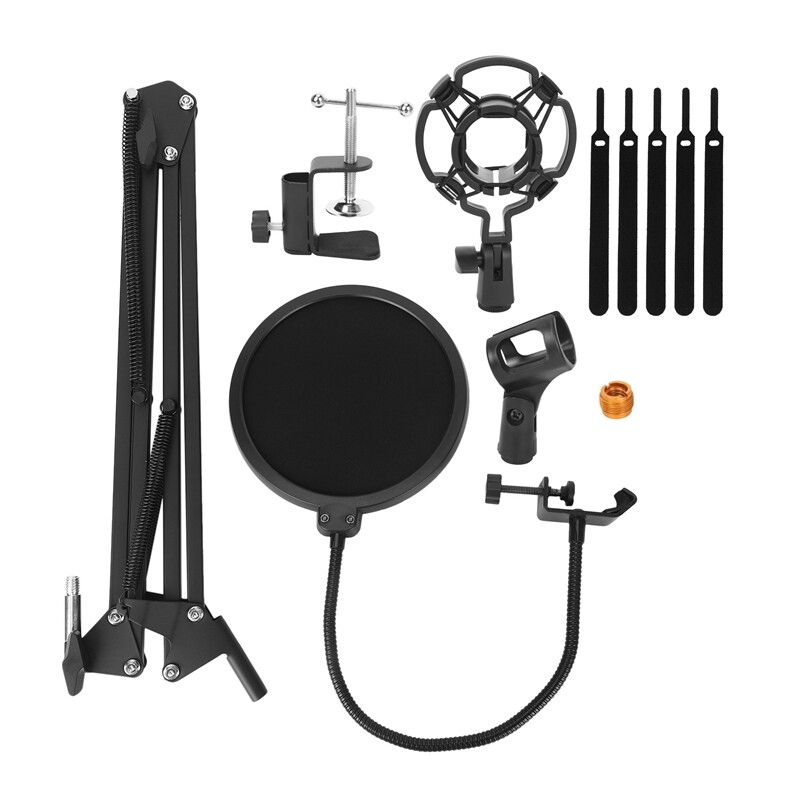All-in-One Combo: Package includes all the items you need for studio recording and live sound, a microphone stand, a zinc alloy table mounting clamp, a 3/8 inch to 5/8 inch metal screw adapter to make it perfect for blue and other microphones, a filter, a shock mount and five cable ties, easy to assemble and carry.