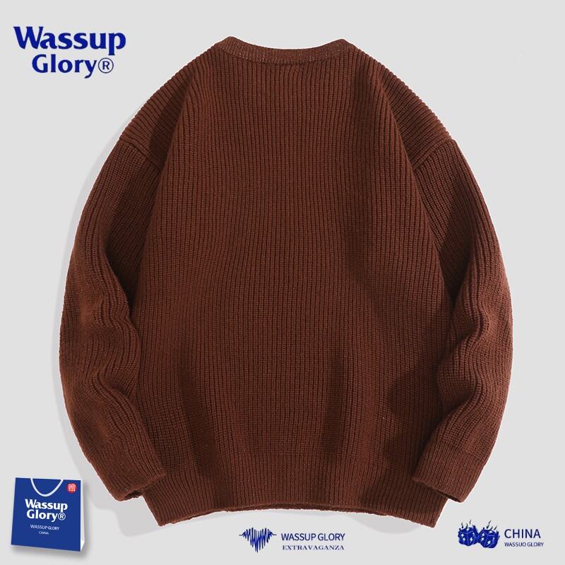 Wassup2022 Autumn and Winter Loose Solid Color round Neck Sweater Men's Simple Versitile Fashion Couple Sweater