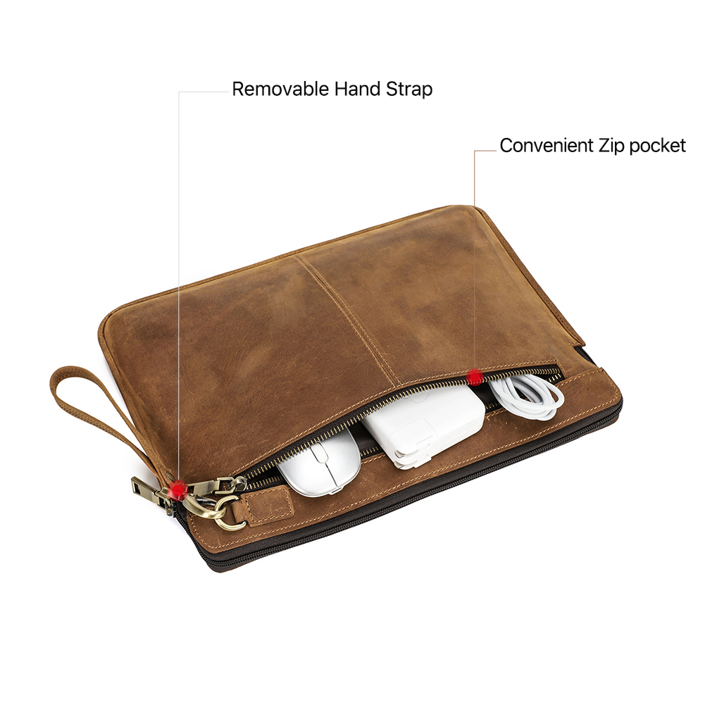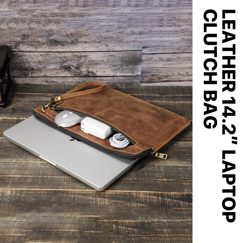 Genuine Leather Laptop Sleeve Case For Macbook Pro 14.2 Inch A2442 2021 Macbook 13-14 Inch Crazy Horse Cowhide Leather Case