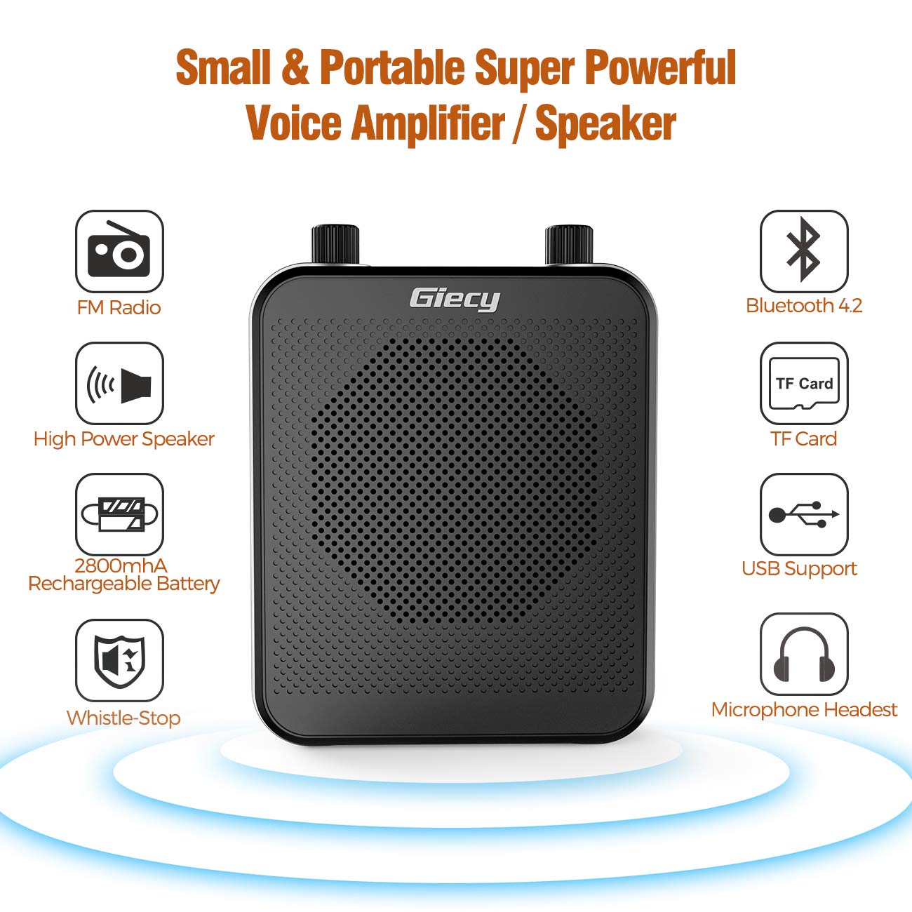 ??Giecy Portable Voice Amplifier Elite Bundle with Wired and Wireless mic headset. Maximum Flexibility.For Teachers, Show presenters. Clear Voice amplified and transmitted over distance with 2800 mAh