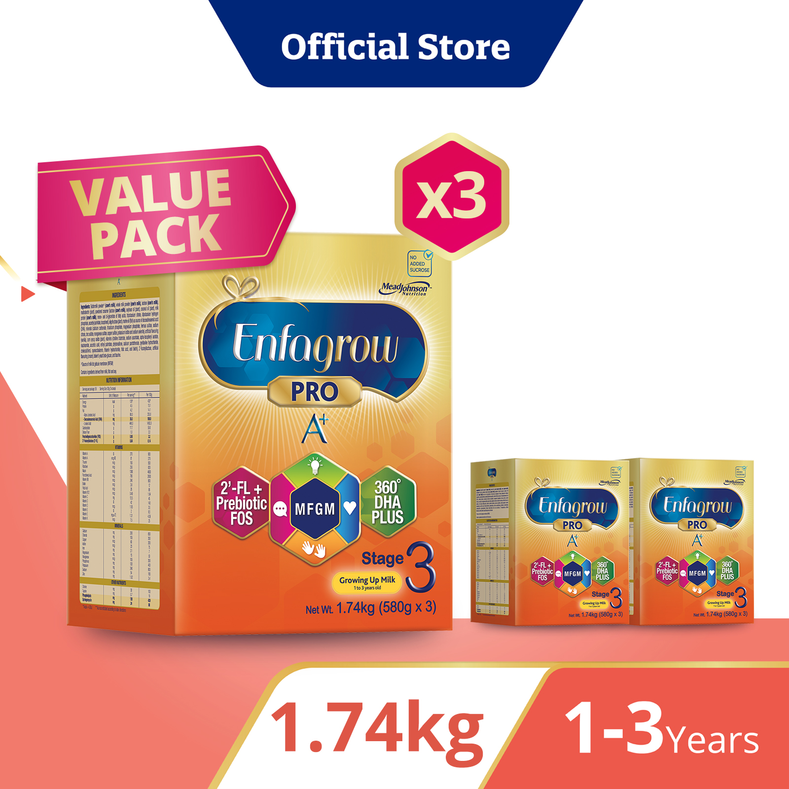 [Bundle of 3] Enfagrow Pro A+ Stage 3 1.74kg for Children (1-3Y) Value Pack