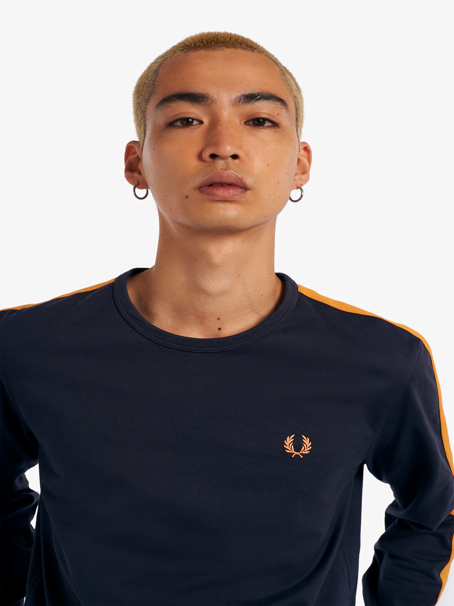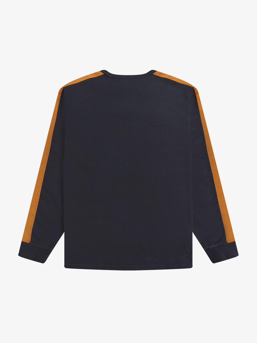 Fred Perry M3828 Made in Japan Botanical Dye Long Sleeves Ringer T-Shirt (Black/Tangerine)