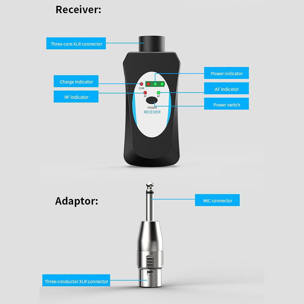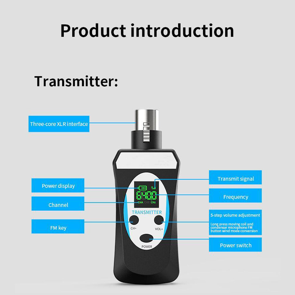 1. Advantages and Scenarios: The microphone wireless transceiver solves the wireless audio signal transmission between the microphone and the audio, the mixer, and the sound card, realizing the expansion effect of wireless audio transmission, and solving the traditional wiring mode. This product is suitable for stage performances, outdoor entertainment, speeches, outdoor performances, and other places