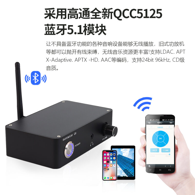 PJ. Miaolai Q9 Fancier Grade Bluetooth 5.1 Audio Receiver Qcc5125 +1794 Lossless Decoding AptX