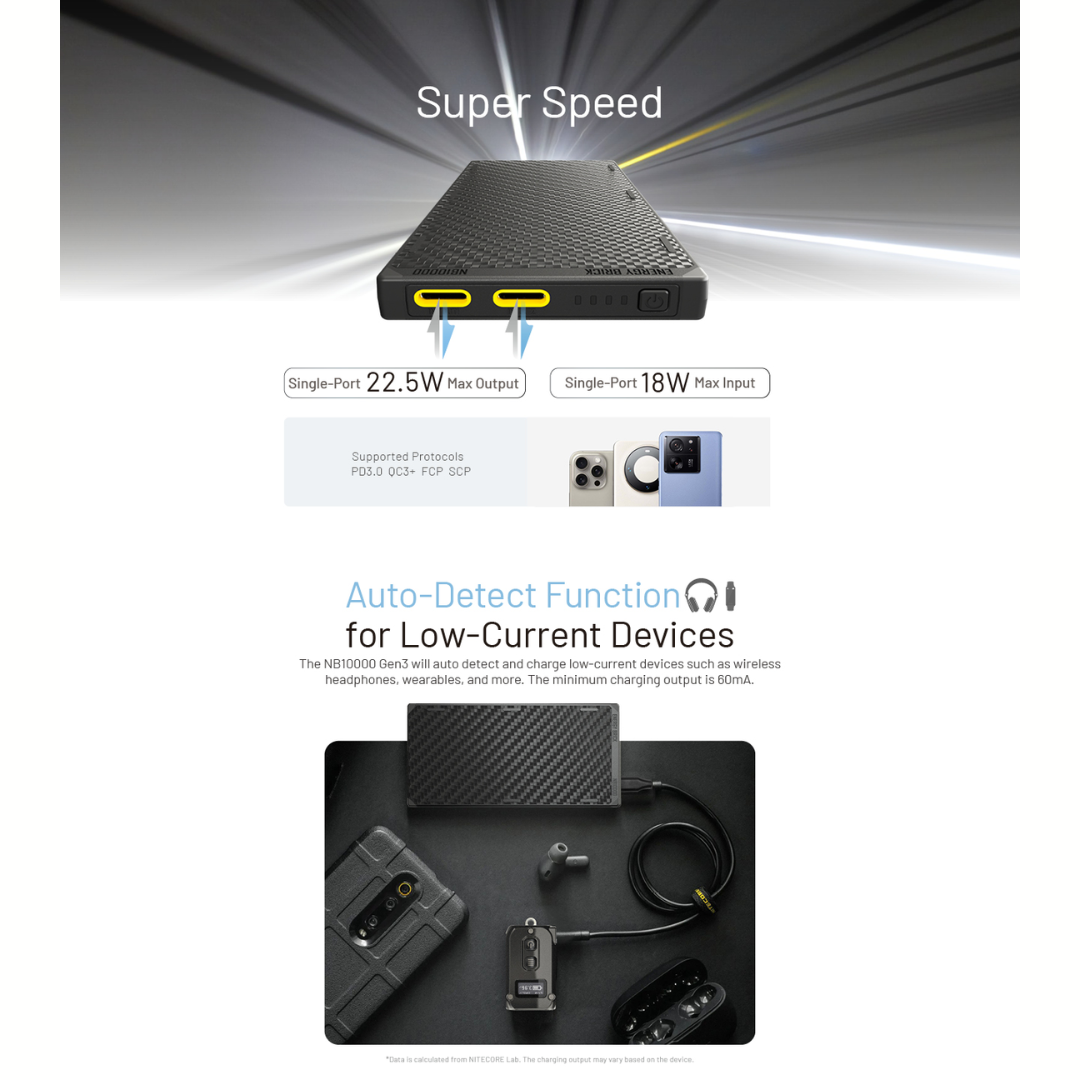 Nitecore NB10000 Gen 2 (USB-A+USB-C) / Gen 3 (USB-C x 2) Quick-Charge Dual Port 10000mAh Power Bank Powerbank