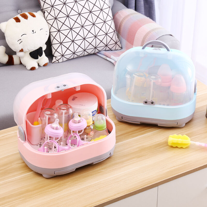 Baby Bottle Storage Box Portable Dustproof Draining Rack with Lid Baby Tableware Milk Powder Storage Box Shelf