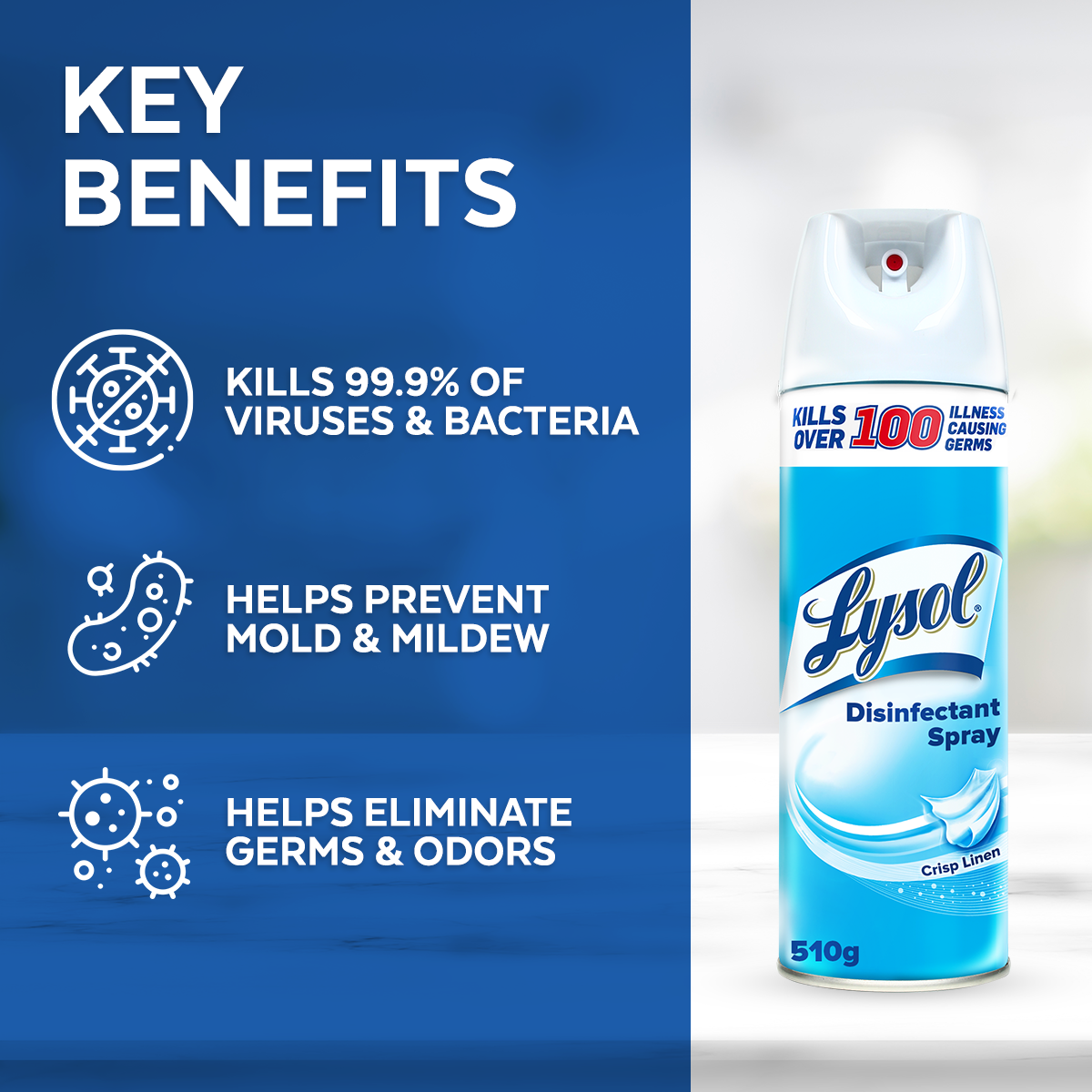 Buy 2 free 1 Lysol Disinfectant Spray Crisp Linen Scent 510g