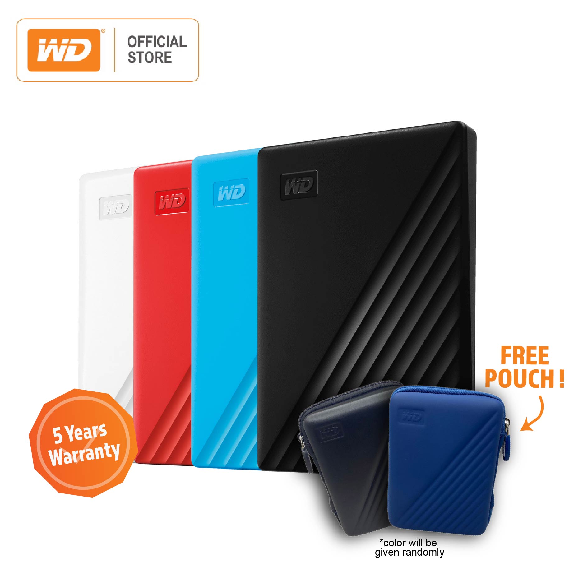 WD My Passport Portable HDD - New ID | Black/Red/Blue/White | 1TB/2TB/4TB/5TB | 3 Years Warranty - WD official Store