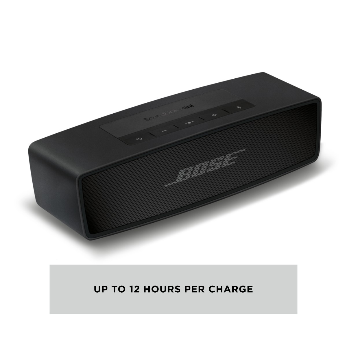 Designed for sleek simplicity, its single-piece aluminum casing is durable and ultra-compact. Weighing in at just 1.5 pounds, it’s small and light enough to take it with you anywhere. It has a low profile that lets you place it almost anywhere without interruption and provides a low center of gravity that makes it nearly impossible to tip over. And with 20% more battery life than the current SoundLink Mini (up to 12 hours), you can keep the playlist going all afternoon.