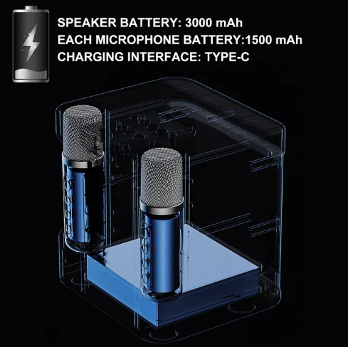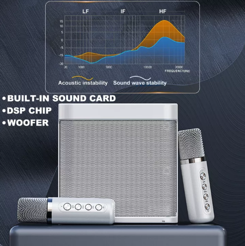 YS-203 Dual Bluetooth Speaker With 2 Wireless Microphones Outdoor Family KTV Set