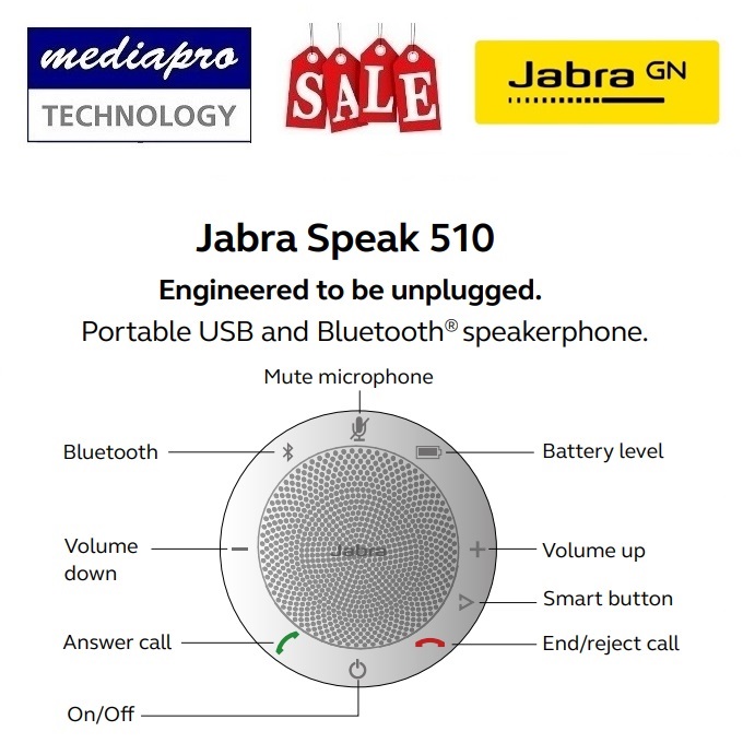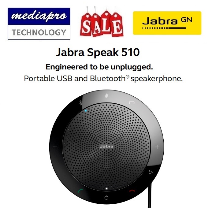 JABRA Speak 510 Conference Speakerphone, USB & Bluetooth, Omni-Directional Mic, 15hrs Rechargeable Battery - 2 Years Local Distributor Warranty