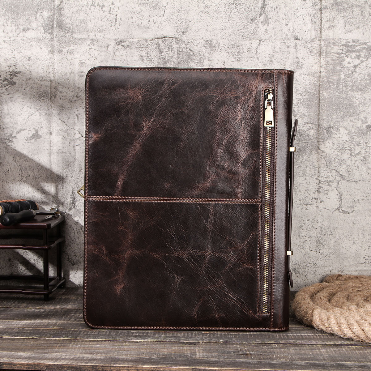 CONTACT'S FAMILY Retro Padfolio Cow Leather Case for iPad Pro 12.9 2020 Journal Document A4 Portfolio bag For 13.3” Macbook Air