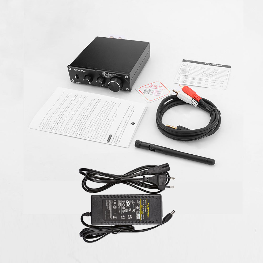 Amplifier * 1 Bluetooth antenna * 1 Audio Cable * 1 User's manual * 1 (Power Supply * 1 ) Depends on your selection